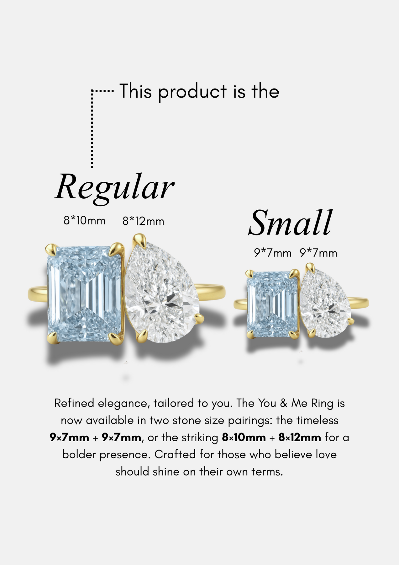 Presenting the "You & Me" Alara Birth Month Ring, inspired by the timeless romance of Napoleon’s proposal to Empress Josephine. This exquisite two-stone ring, featuring one pear-shaped and one elongated radiant gemstone, captures the essence of eternal love and partnership. Each stone is meticulously selected to reflect the birth month colours of two special individuals, weaving their unique stories into a single, elegant design.